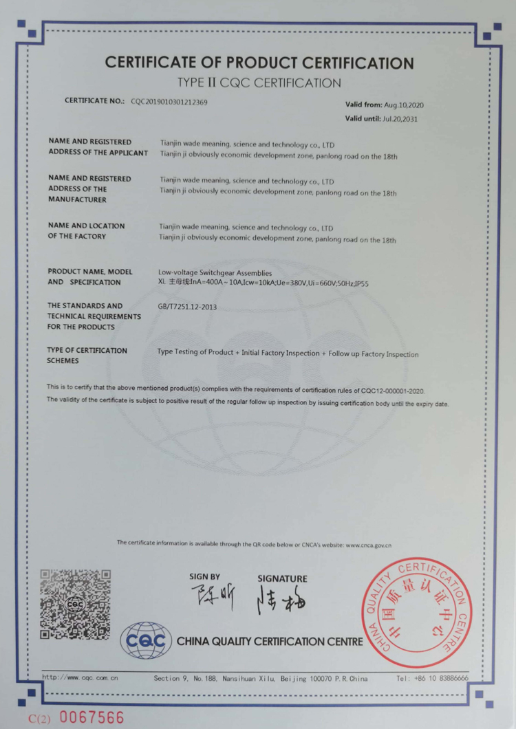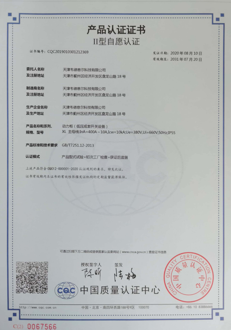 動(dòng)力柜-55型(低壓成套開關(guān)設(shè)備)產(chǎn)品認(rèn)證證書