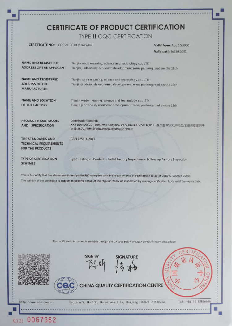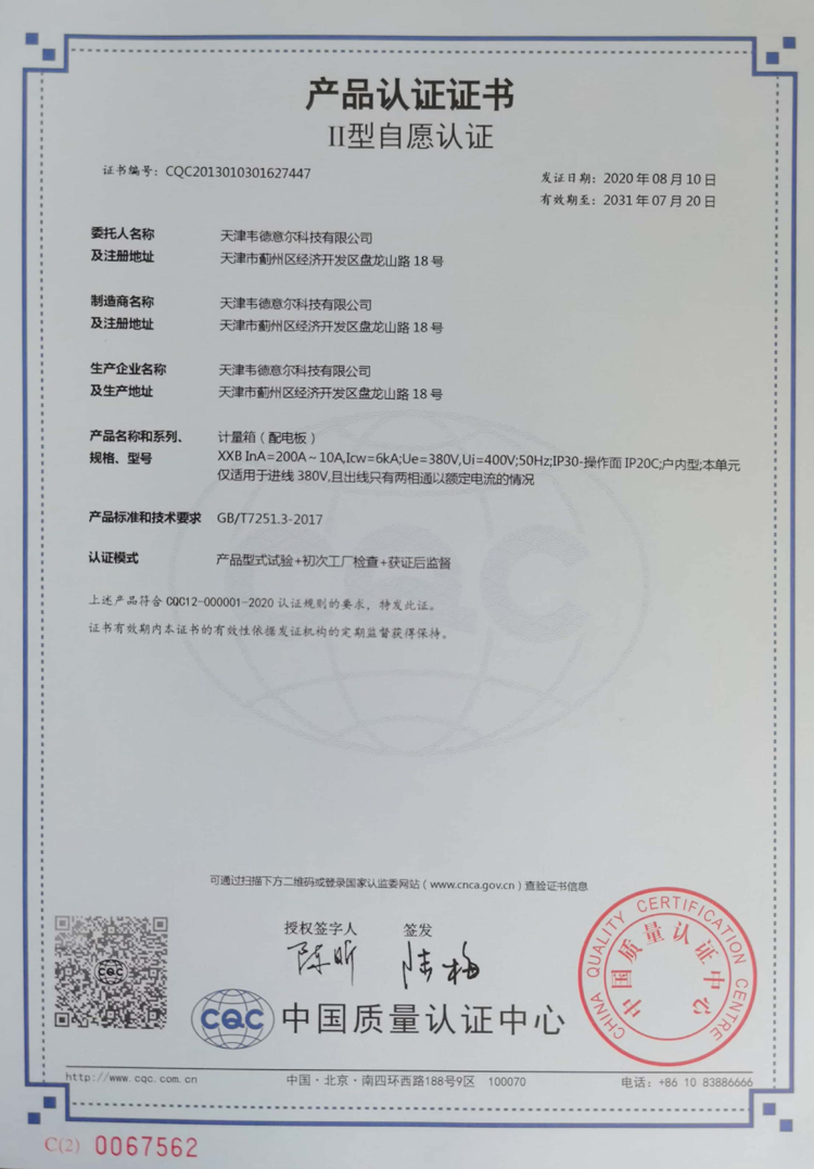 計(jì)量箱(配電板)產(chǎn)品認(rèn)證證書