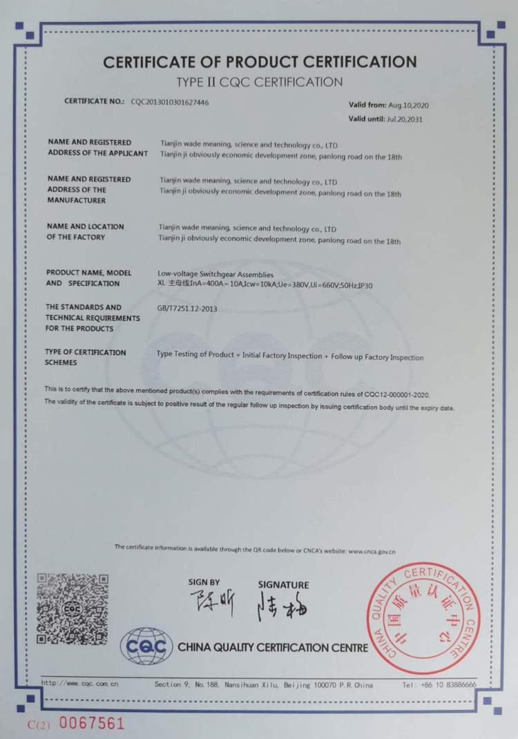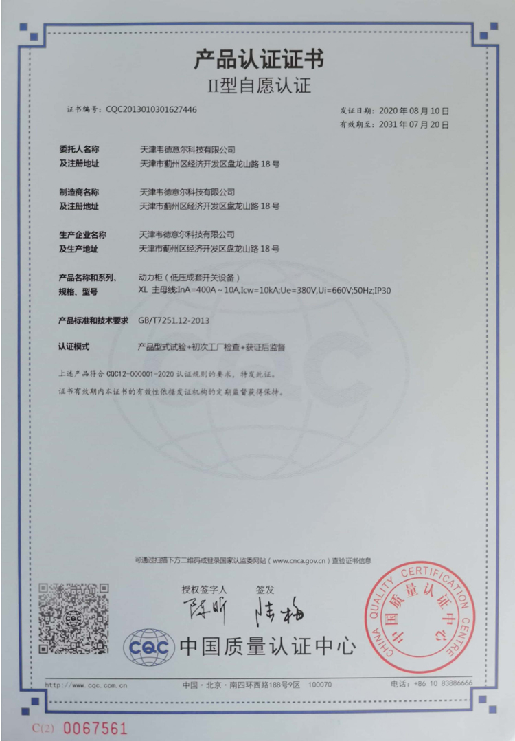 動力柜-30型(低壓成套開關(guān)設(shè)備)產(chǎn)品認證證書