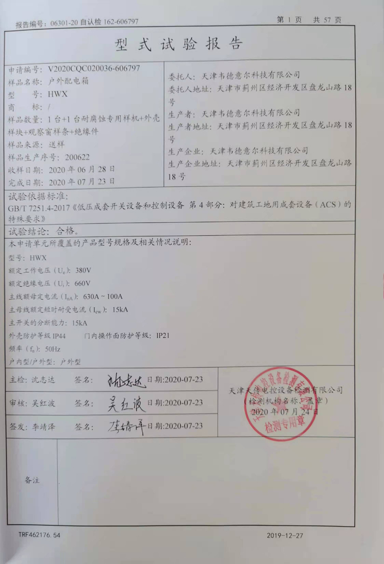 戶外配電箱型式實(shí)驗(yàn)報(bào)告