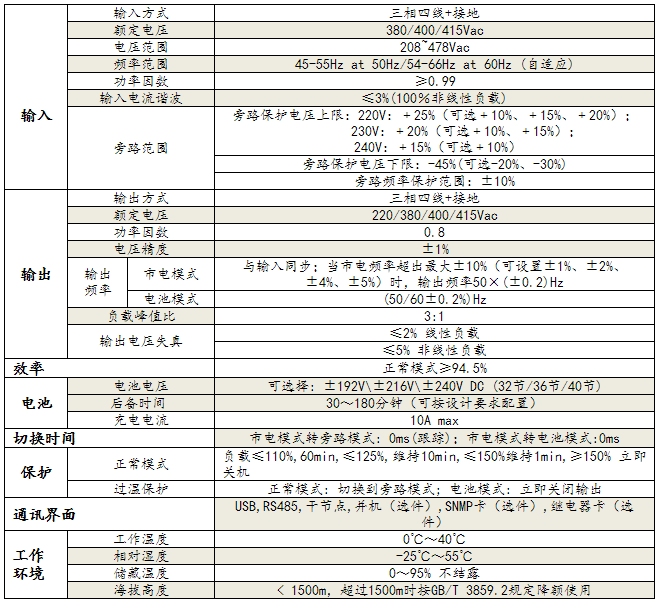 該系列UPS是三進(jìn)三出型UPS,輸入電流三相均衡,可以均衡三相電網(wǎng)的負(fù)荷。